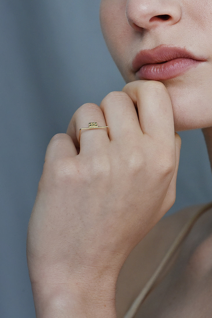 Golden K14 pave ring with 6 tsavorites 0,042ct.