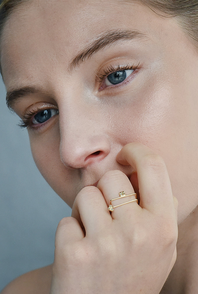 Golden K14 pave ring with 4 brown brilliant cut diamonds 0,028ct.
