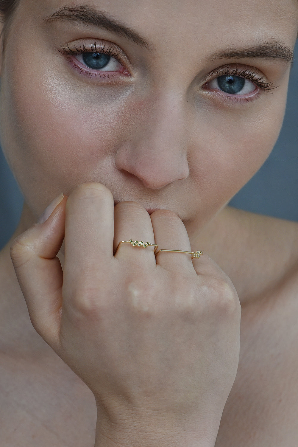 Golden K14 S shaped pave ring with 4 brown brilliant cut diamonds 0,028ct.