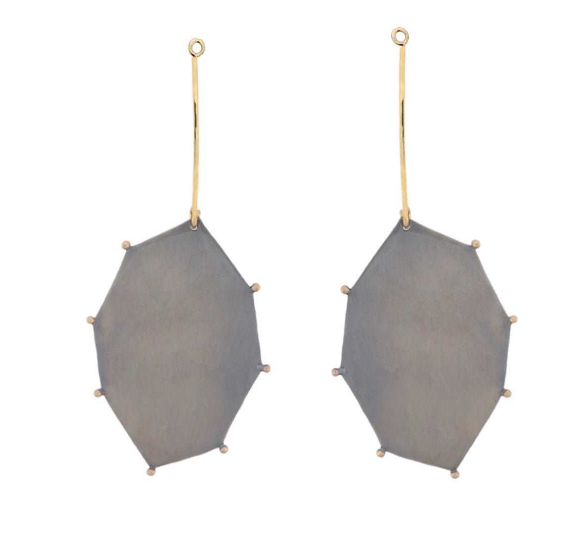 They feature a small hole that allows them to be worn as passepartout pieces, simply hang them from any stud earring to create your own unique combination!